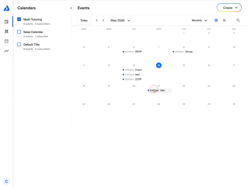 - The first way to create an event is to click the Create button on the upper right of the dashboard and select Event.