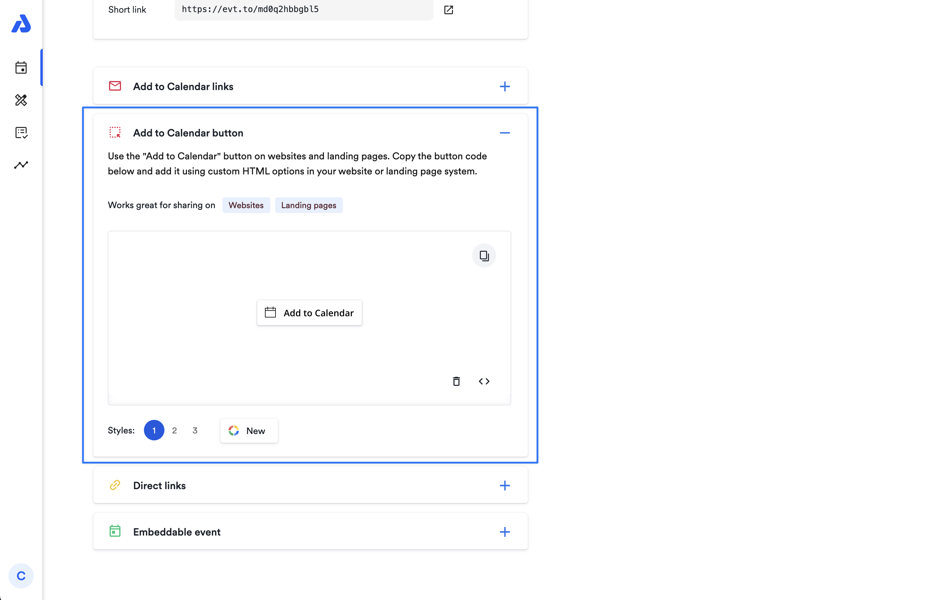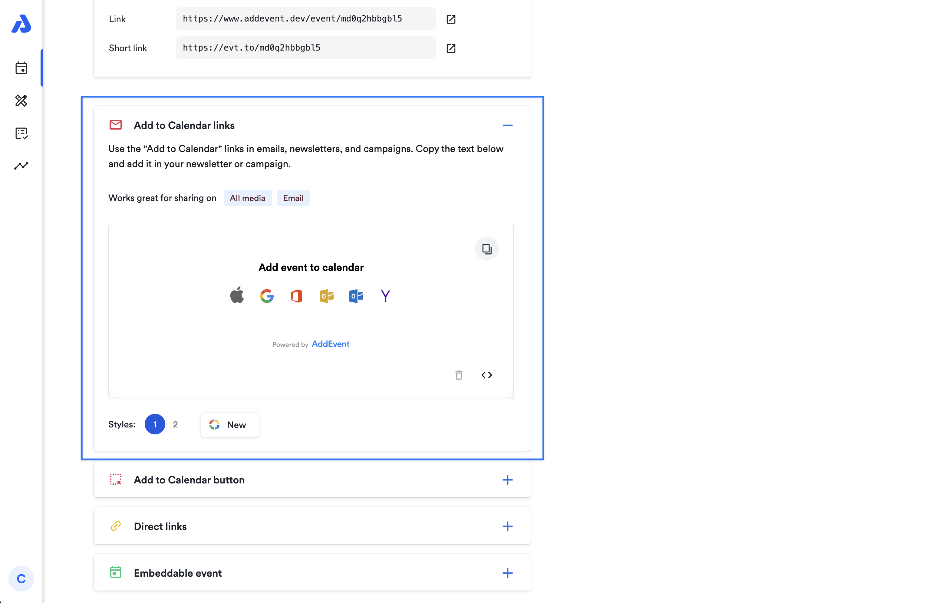 Now, let's go over the three different sharing methods AddEvent offers! All of the sharing methods are outlined below.