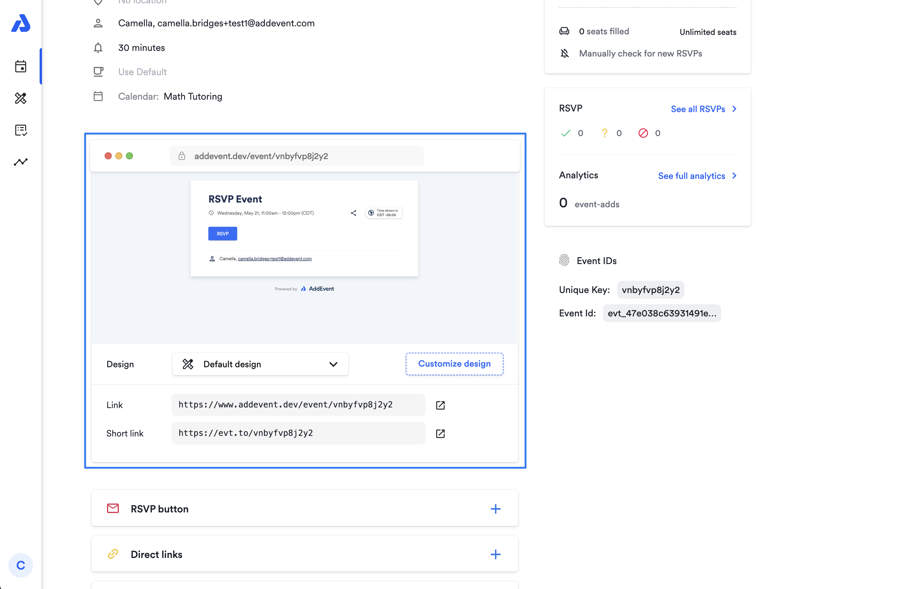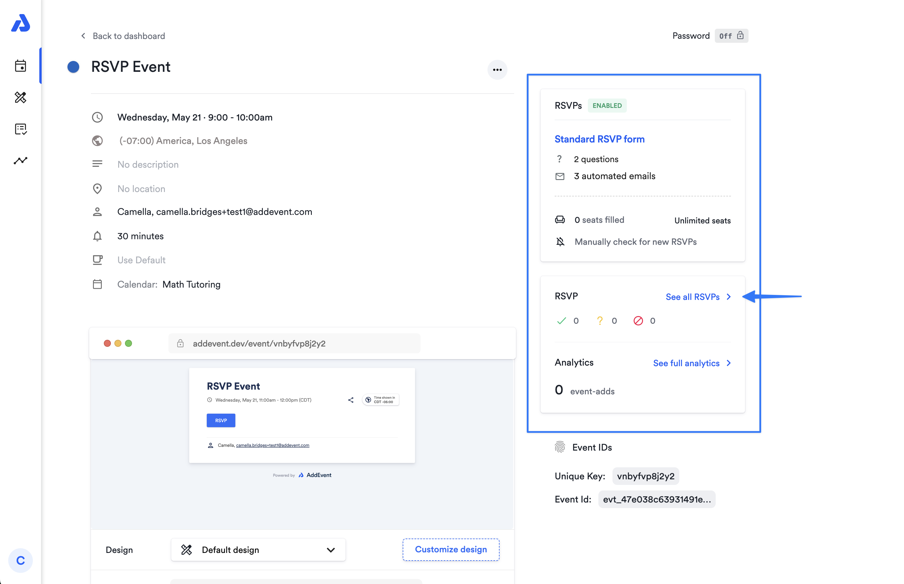 Now that you have shared your event, you will begin collecting RSVPs; you can check the RSVP attendee list/details page to see your list of event responses, send update emails, and more.