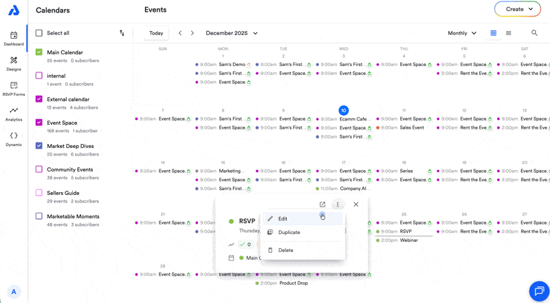- From there, click the "three dots" icon located on the top-right of the RSVP form you would like to edit.