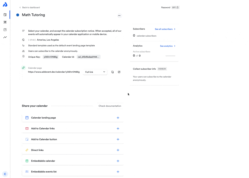 - In your AddEvent dashboard, locate the calendar you want to edit on the left side of the screen and click the calendar's title.
