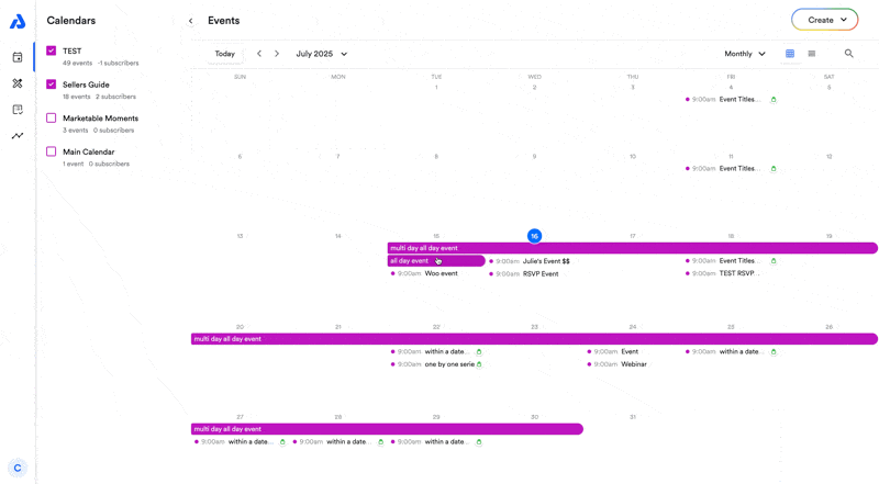 - Access the event details page: Click the calendar you want to embed and scroll down to the Embeddable event section and expand the embeddable event sharing method.