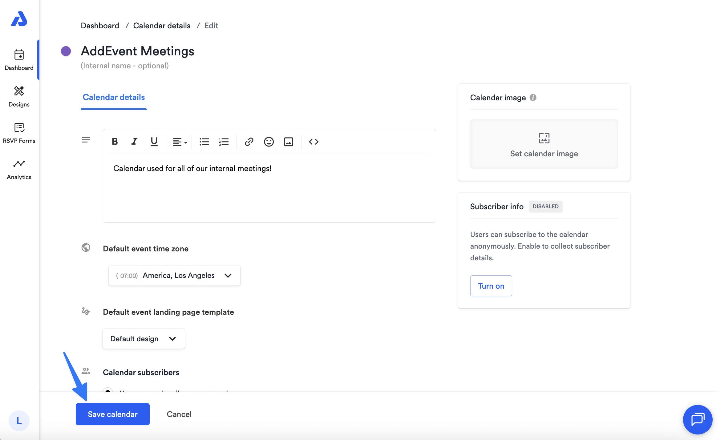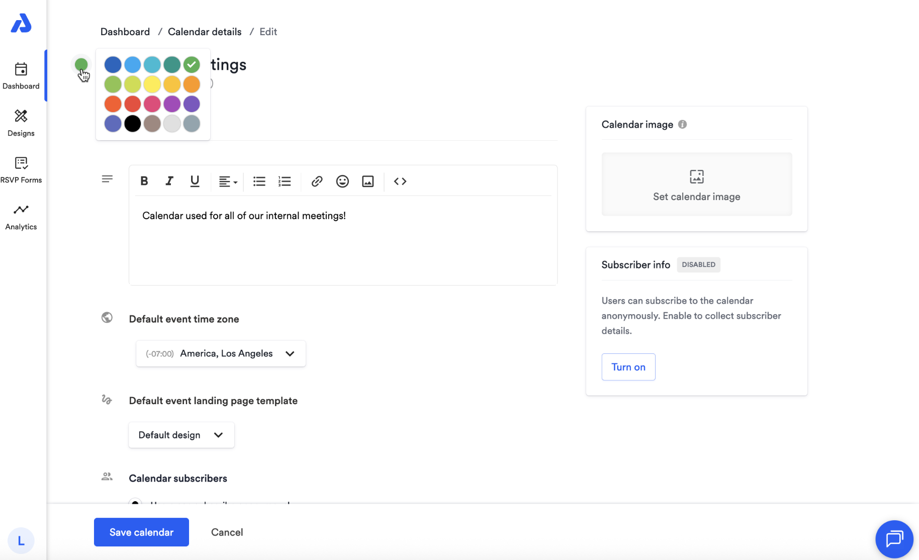 You can apply a color to your calendars (and events!) to enhance organization within your AddEvent Dashboard. Learn how to do so below with our detailed steps.