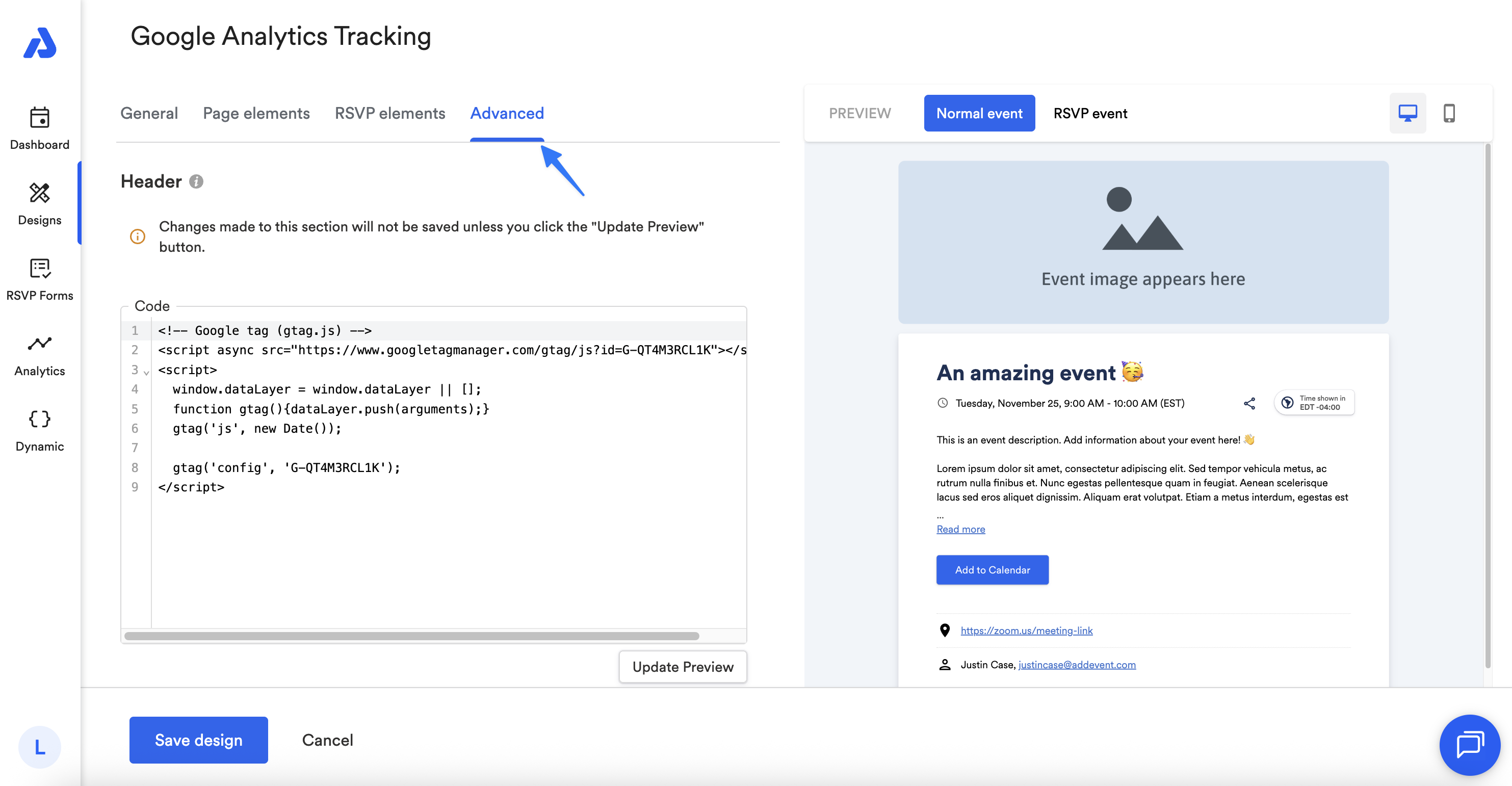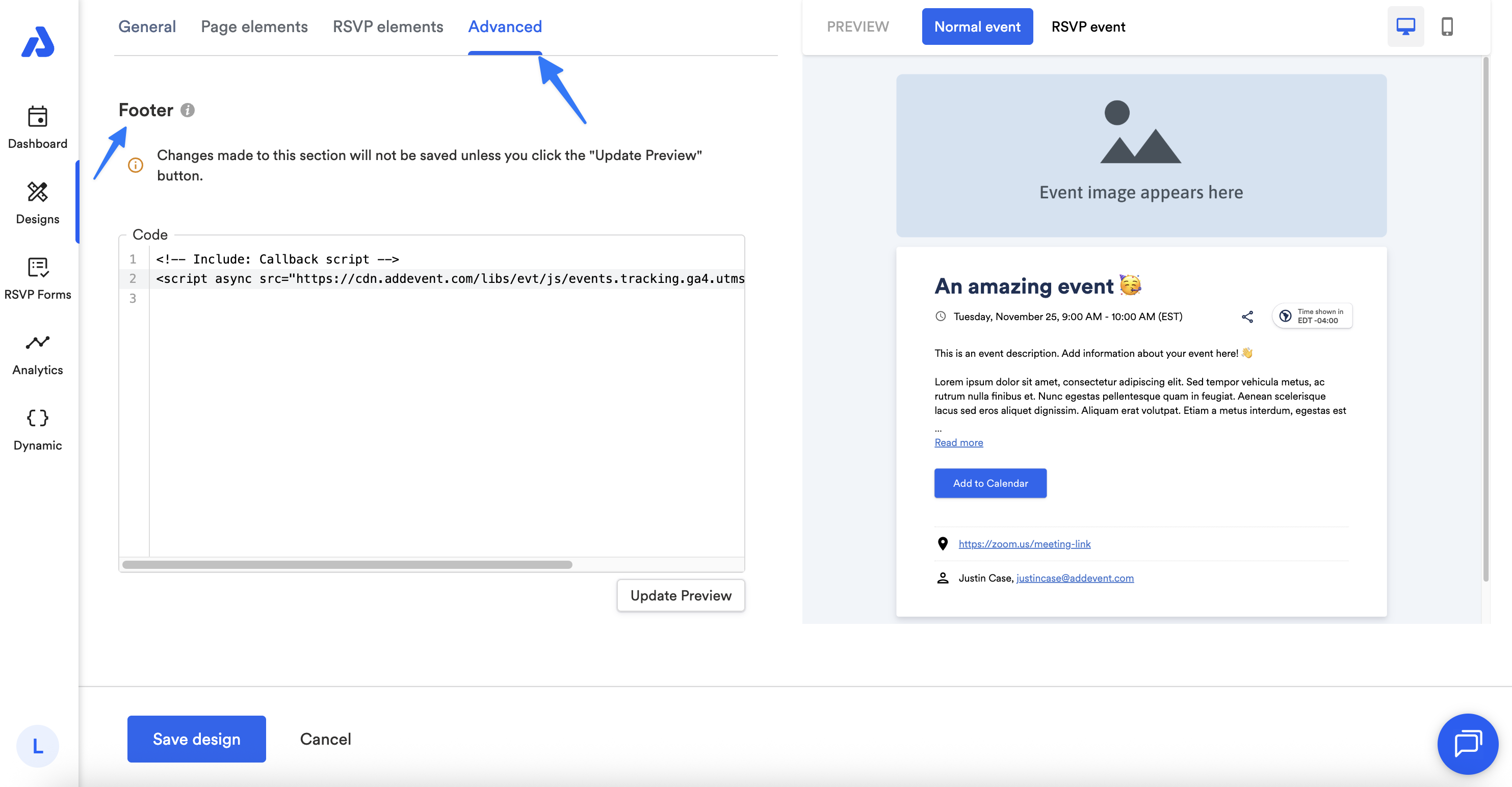 Being able to track where your users are finding your events is an invaluable insight for marketing, no matter your business size. Urchin Tracking Modules, commonly referred to as UTMs is the standard way to track this information and pass it to your preferred data tracking tool of choice. This guide will show you how to add this capability to any of your design templates!