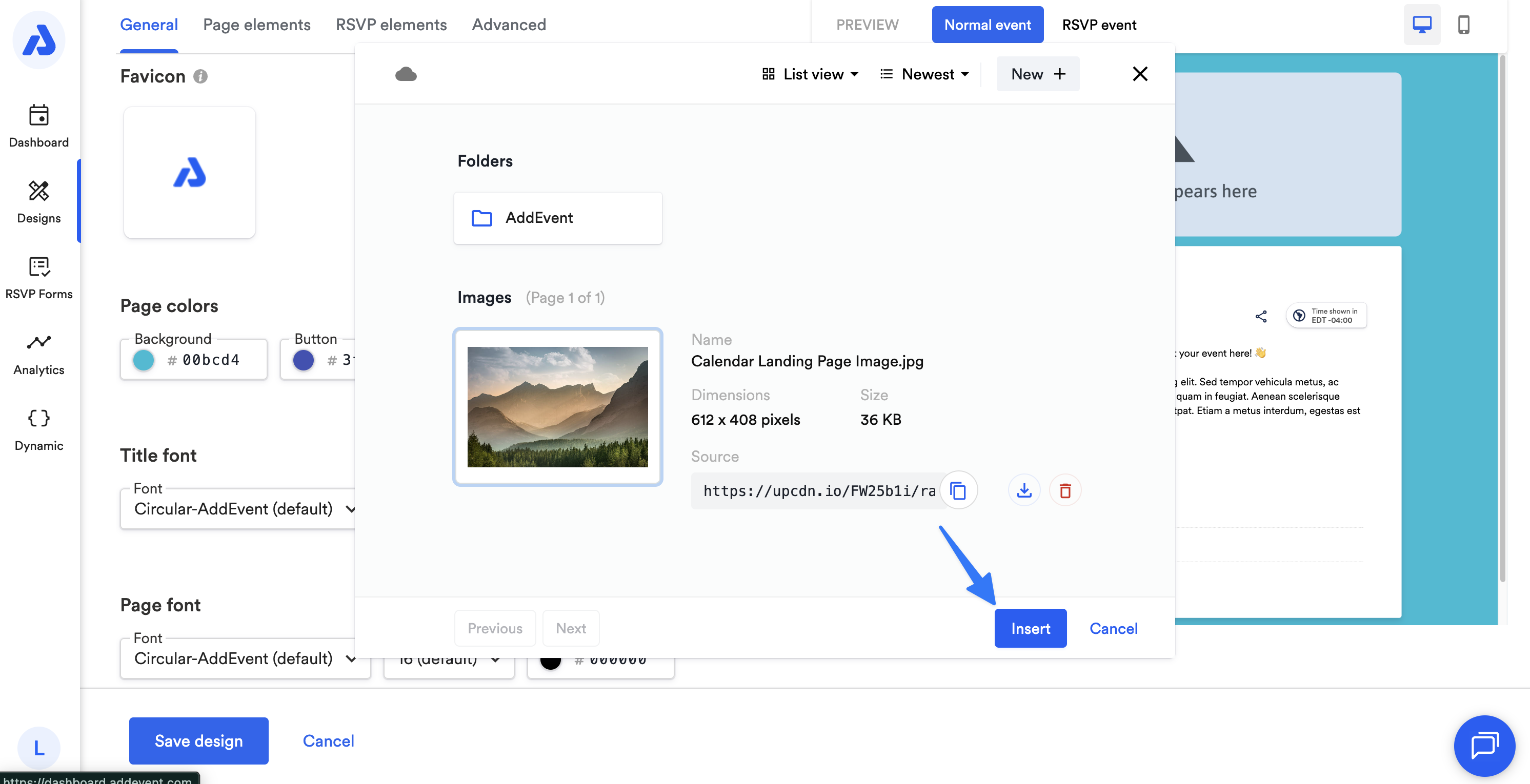 Click the default AddEvent logo image.