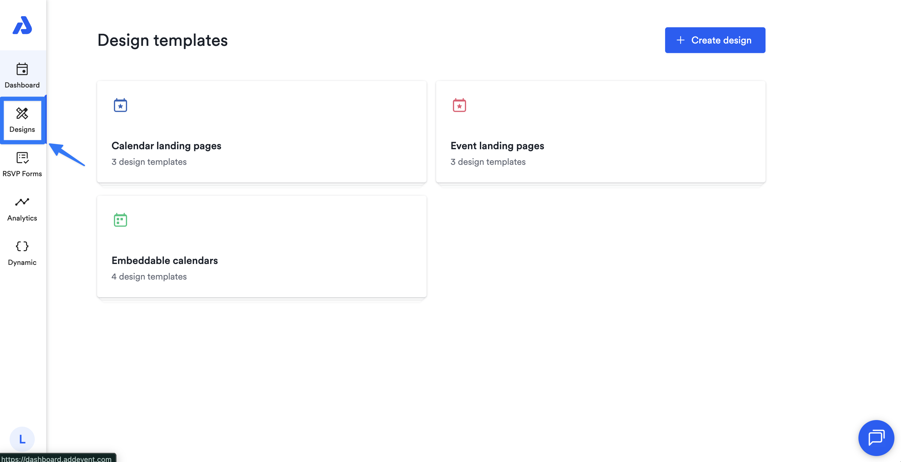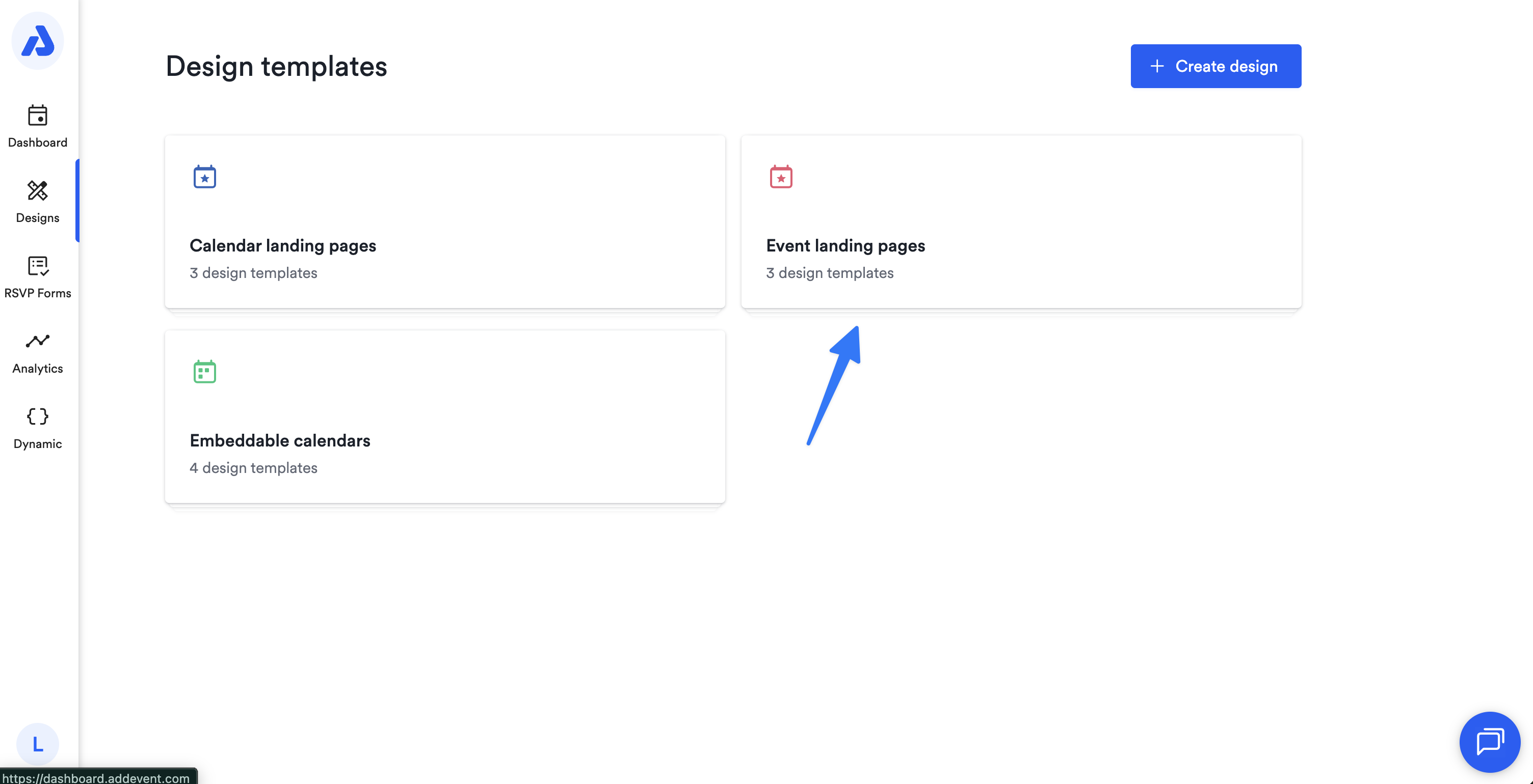 Select an existing design template or click the + Create design button.