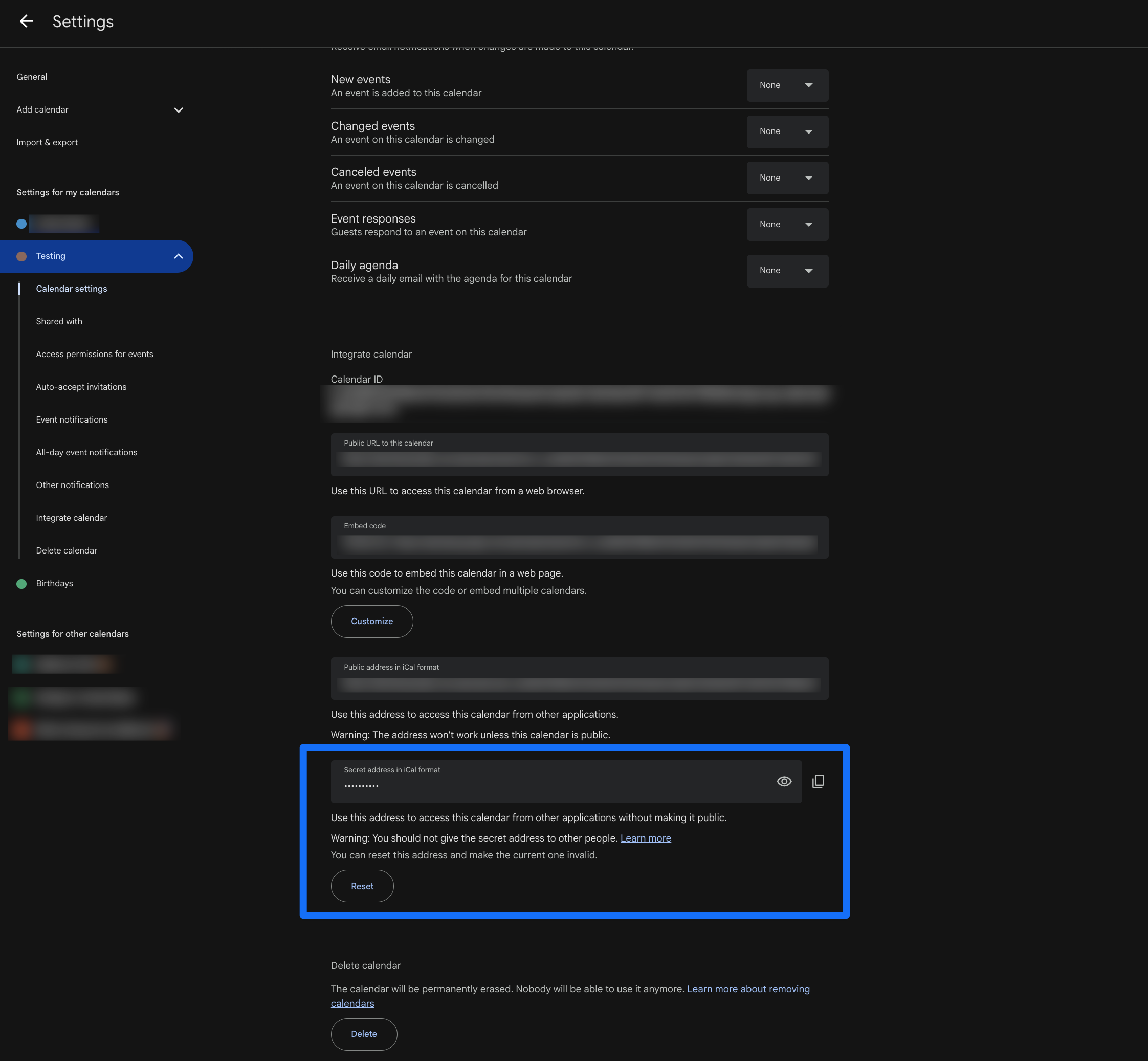 Copy the Link: Click the eye icon and copy the "Secret address in iCal format":