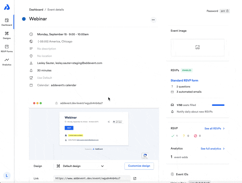 With these steps, your attendees will have an easy way to register for your event and add it to their calendars. For further details on customizing your RSVP landing page, click here.