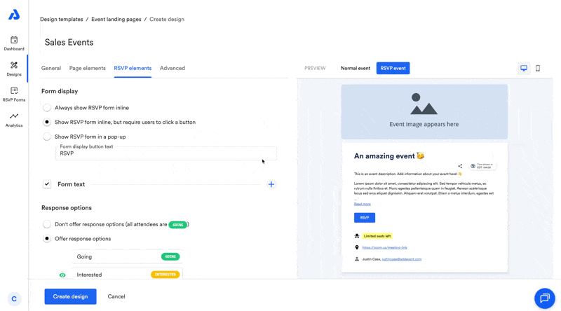You can also customize the text of the RSVP button.