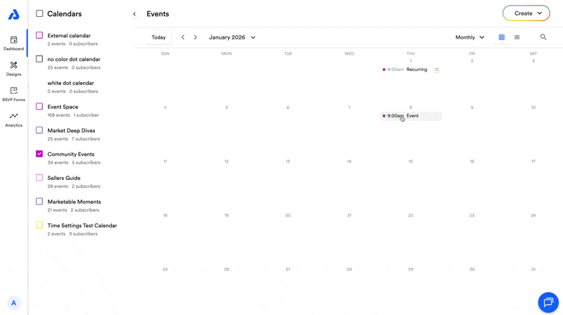 Each event automatically generates a unique landing page when created. This landing page includes two URL options—a standard link and a short link. To share the event landing page: