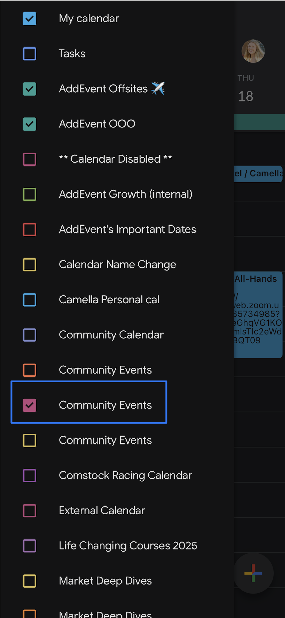 See below for example that the subscription calendar is checked/selected to be in view on desktop.