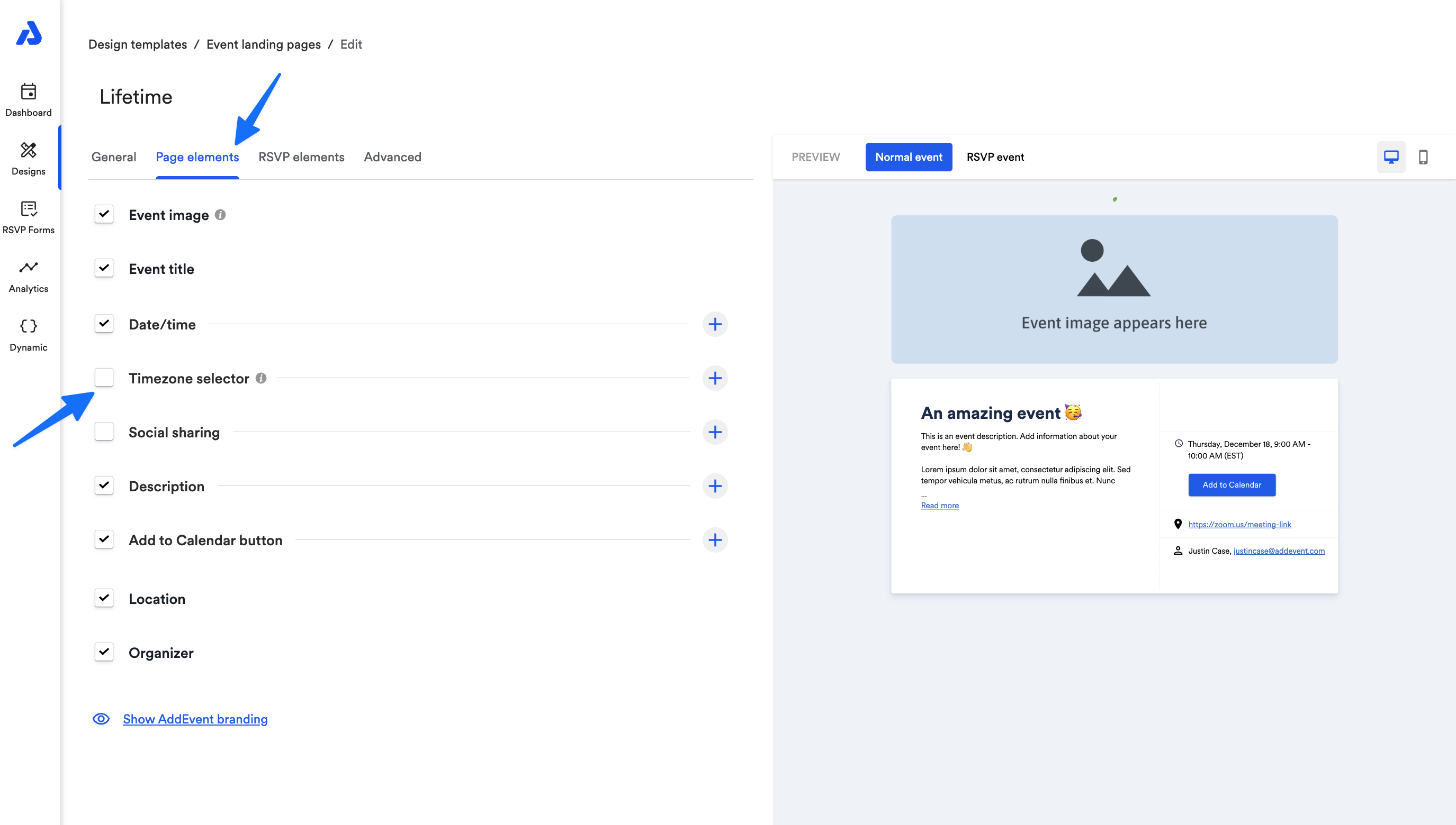 This help doc explains the timezone selector on your event landing pages.